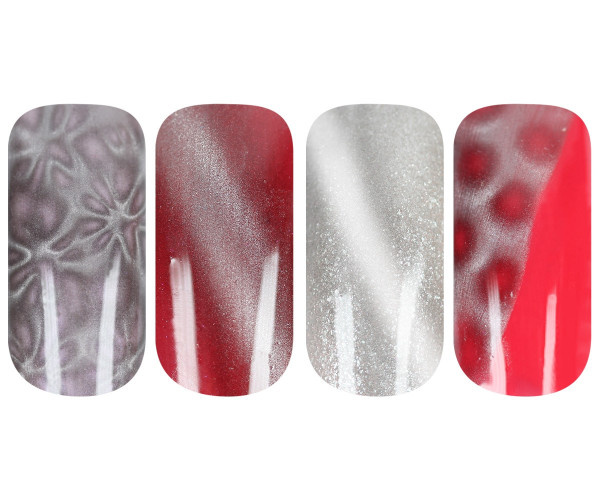 Kovové častice magnetického gélu, ktoré sú priťahované pomocou magnetu, vedú k efektívnym odrazom svetla na nechtoch. V závislosti od farby pozadia získate na nechtoch vždy nové farebné efekty. S magnetickou tyčinkou Emmi-Nail získate vzrušujúci efekt mačacích očí za okamih a pomocou magnetického pera Emmi-Nail vytvoríte trendy kvetinové vzory alebo jemné prúžky.