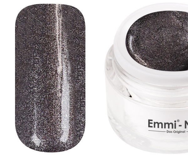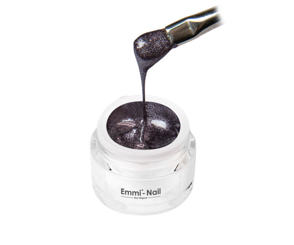 Elegantný sivo-čierny farebný gél s metalickým fialovým leskom zaisťuje dlhotrvajúci a profesionálny farebný výsledok na vašich nechtoch. Vysoká hustota pigmentu a krycia schopnosť farebných gélov Emmi-Nail vám poskytnú ohromujúci farebný zážitok.