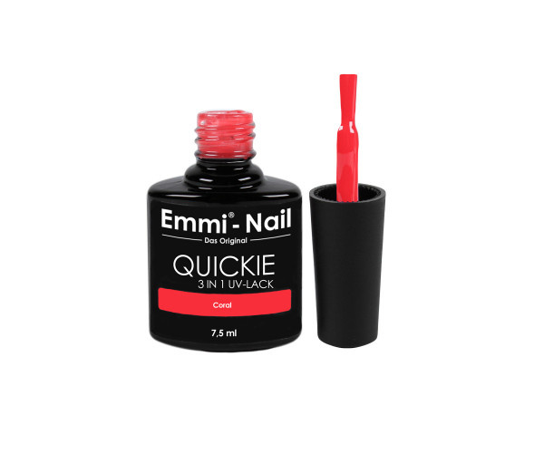 Nový lak Emmi-Nail Quickie Coral 3v1 7,5ml sa nanáša rovnako ľahko ako lak na nechty. Dodá nechtom tmavú koralovočervenú ružovú farbu a ohromujúci lesk. Vytvrdzuje sa pod UV alebo UV/LED svetlom. Odpadá nepríjemný čas sušenia. Ak chcete odstrániť lak 3v1 z prírodných nechtov alebo gélovej modeláže, jednoducho lak odpilujte.