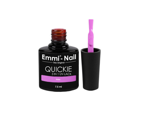 Nový Emmi-Nail Quickie Frida 3v1 7,5ml sa nanáša rovnako ľahko ako lak na nechty. Dodá vašim nechtom veľkolepý neónovo fialový  vzhľad a oslnivý lesk. Vytvrdzuje sa pod UV alebo UV/LED svetlom. Odpadá nepríjemný čas sušenia. Ak chcete odstrániť lak 3v1 z prírodných nechtov alebo gélovej modeláže, jednoducho lak odpilujte.