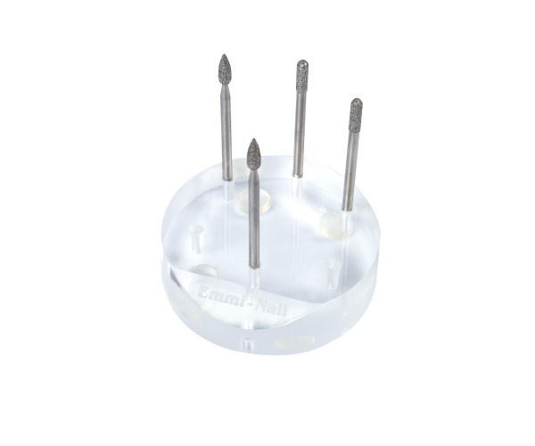 Akrylový držiak nielen dobre vyzerá, ale ponúka aj priestor pre 6 fréz, ktoré máte vždy po ruke. Priehľadný vzhľad a ozdobné logo Emmi-Nail dotvárajú štýlový vzhľad.