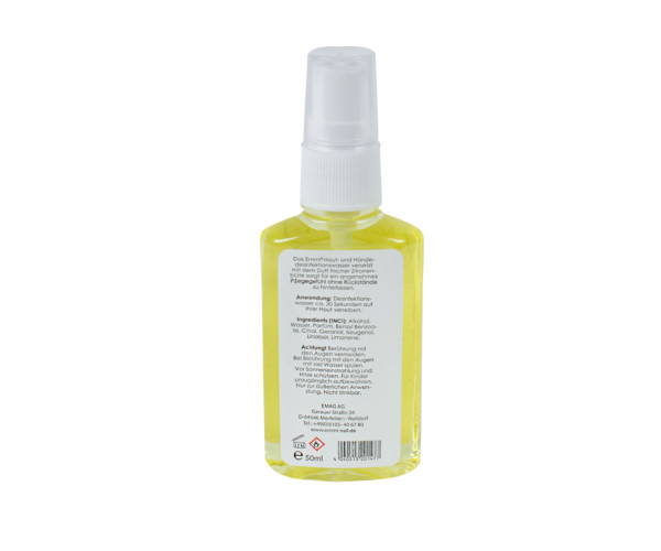 S 50 ml dezinfekčnej vody od Emmi-Life si vyčistíte ruky za pár sekúnd bez potreby vody, mydla a uterákov. Vďaka jednoduchej aplikácii budú vaše ruky svieže, ošetrené a pružné. Malá praktická fľaštička je praktická v kancelárii, doma a zmestí sa do každej kabelky. Jemne dávkovaným prúdom spreja dezinfikuje celú dlaň ruky . Pre hygienicky čisté ruky bez vody a ideálne na cesty.