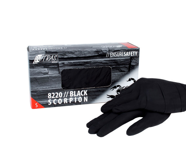 Jednorazové rukavice Black Scorpion veľ. S vyrobené z latexu pre nechtové salóny