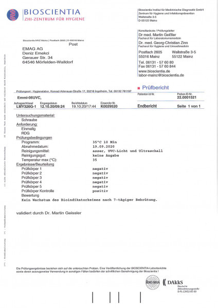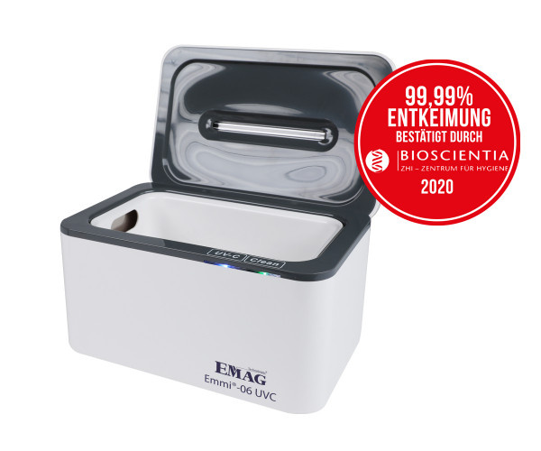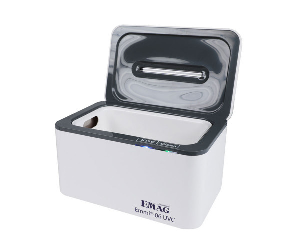 Nový ultrazvukový čistič Emmi-06 s nerezovou vaničkou a UVC svetlom čistí nástroje, ako sú nožnice na nechty, profesionálne zatláčacie nástroje alebo orezávače špičiek. UVC svetlo tiež ničí DNA mikróbov a potláča ich schopnosť reprodukovať sa. Predmety sa dajú z ultrazvukového kúpeľa jednoducho vybrať pomocou koša.