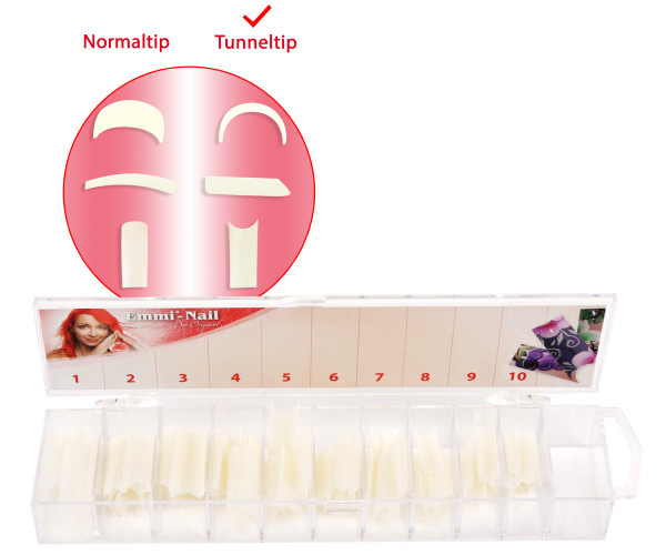 Gélové a prírodné nechty si môžete predĺžiť prírodnými tunelovými tipmi z Emmi-Nail tip box 100 kusov natural . Špecifikujú tvar pre dlhé nechty, ale môžu byť tiež prispôsobené k požadovanému tvaru. Nezáleží na tom, či si chcete predĺžiť nechty gélom alebo radšej akrylové nechty s tipmi . Tunelové hroty Emmi-Nail sú vďaka svojej vysokej kvalite veľmi stabilné, ľahko sa pilujú a dokonale sa prispôsobujú prírodným nechtom. Tipy na nechty sú tiež ideálne na navrhovanie vzorových tipov s nail art alebo na prezentáciu farebných gélov .