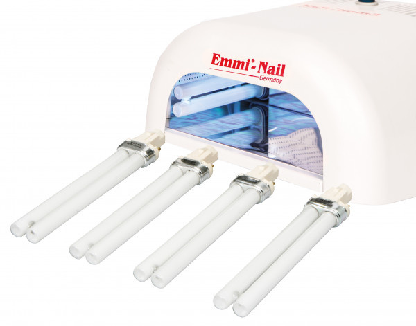 Vrátane 4 UV žiaroviek 9 Watt 9S od EMAG AG. Po približne 1300 hodinách odporúčame zakúpiť náhradné žiarovky . Univerzálne opierky rúk v balení po 5 ks prinesú do vášho nechtového štúdia dodatočnú hygienu a ochránia prístroj pred stvrdnutým gélom.