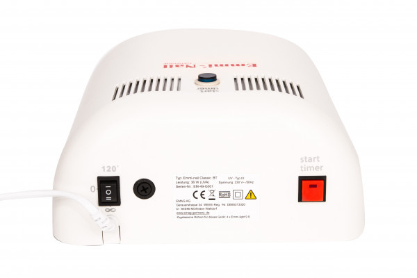 Celoobvodový zrkadlový priestor v spojení s našimi žiarovkami Emmi-Nail 9S zaisťuje optimálne a rovnomerné vytvrdzovanie vášho nechtového dizajnu . 4-žiarovková lampa  (4 x 9 wattov) je vybavená s 2-minútovým časovačom. Emmi-Classic BT má dve tlačidlá časovača (vzadu a navrchu), takže sa ľahko používa. Celkovo sa UV svetlom vytvrdzovacie zariadenie Emmi-Classic BT vyznačuje optimálnym pomerom ceny a výkonu .