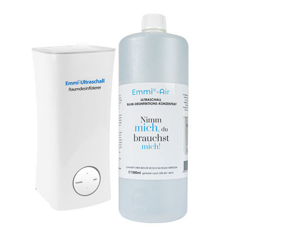 Ultrazvukový izbový dezinfekčný koncentrát Emmi-BioDes sa ideálne hodí pre náš zvlhčovač vzduchu Emmi. Inovatívna dezinfekcia vzduchu eliminuje choroboplodné zárodky vo vzduchu v miestnosti a tým znižuje riziko infekcie . Produkt bol vyladený na ultrazvukovú frekvenciu Emmi, čo znamená, že účinok je oveľa vyšší. Dá sa však použiť aj v iných zariadeniach.